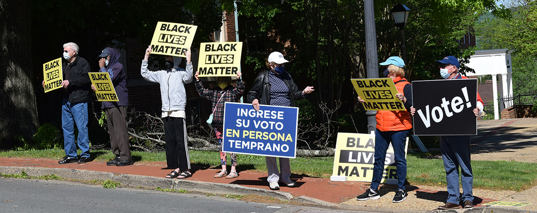 The Black Lives Matter Vigil for Action is a peaceful, quiet gathering of local folks who believe in our Vision and Mission. The vigil has continued without interruption every Saturday morning since June 20, 2020. The only changes have been an increase in our fellowship and commitment, observance of Covid protocals, and the appearance of a few counter-protesters.
